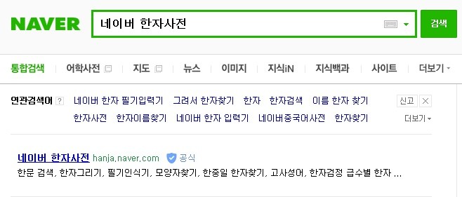 네이버 한자사전 모바일 어플