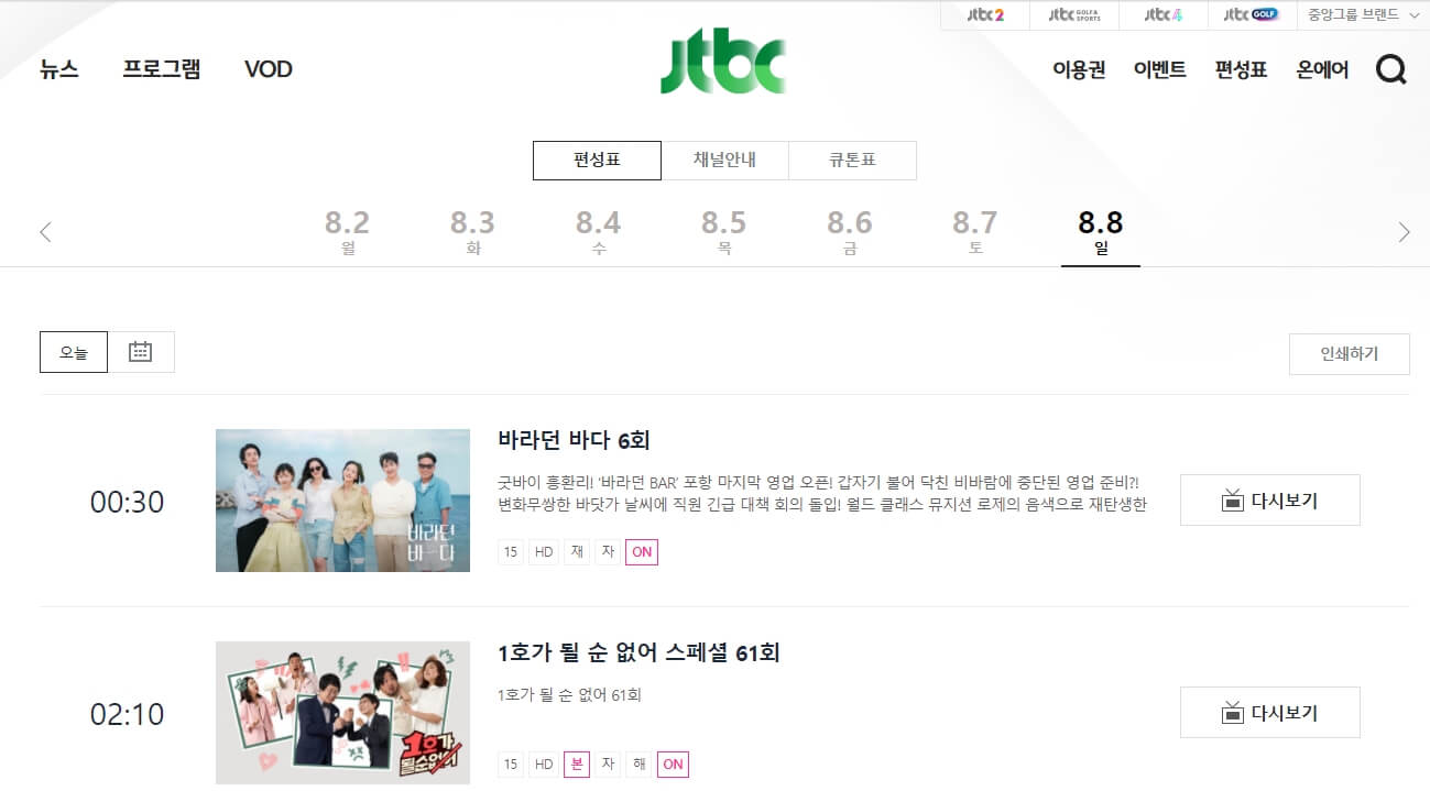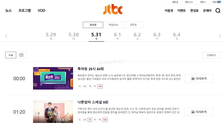 JTBC 편성표는 홈페이지에 매주 새롭게 나오므로 내가 보고 싶은 JTBC 프로그램 확인이 가능 하고요.